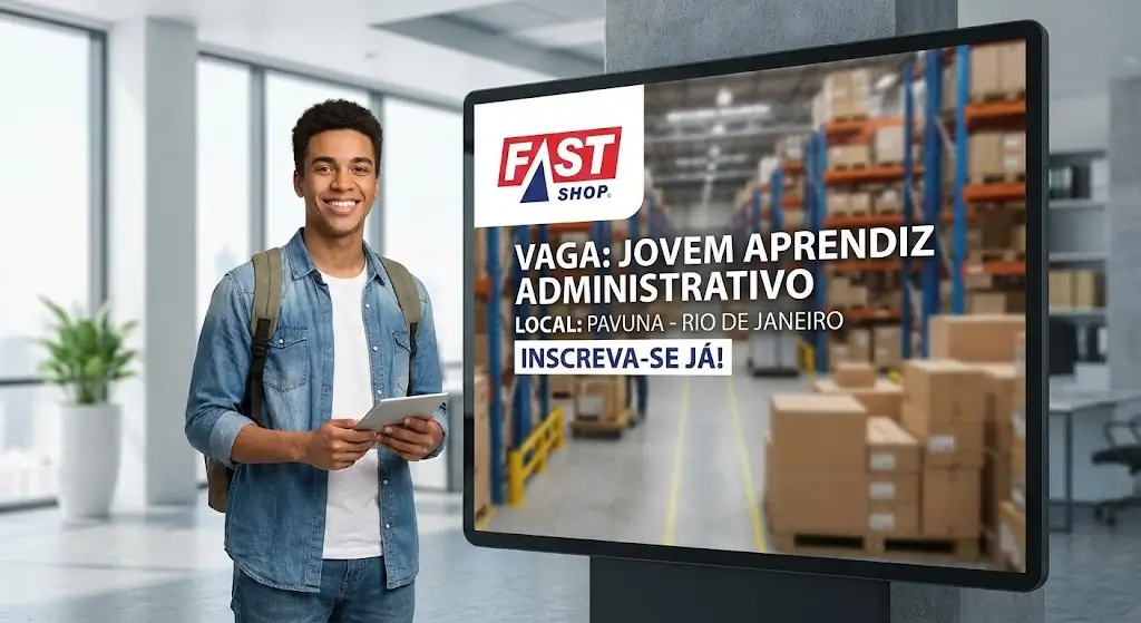 A vaga de Aprendiz Administrativo no CD Pavuna da Fast Shop representa uma excelente porta de entrada para jovens que desejam iniciar a carreira profissional em uma empresa consolidada no varejo brasileiro. Publicada em 12 de janeiro de 2026, a oportunidade está com inscrições abertas até 13 de março de 2026 e é voltada para atuação presencial no Rio de Janeiro, no Centro de Distribuição localizado na Pavuna.