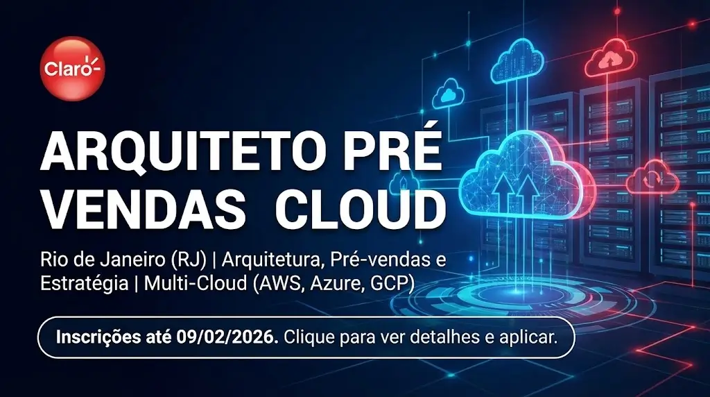 A Claro está a recrutar um Arquiteto Pré Vendas Cloud, uma posição estratégica para profissionais de cloud computing que pretendem atuar em projetos de grande escala, combinando arquitetura cloud, pré-vendas técnicas e visão de negócio. A vaga é para regime full-time, com atuação presencial no Rio de Janeiro, e candidaturas abertas até 9 de fevereiro de 2026.