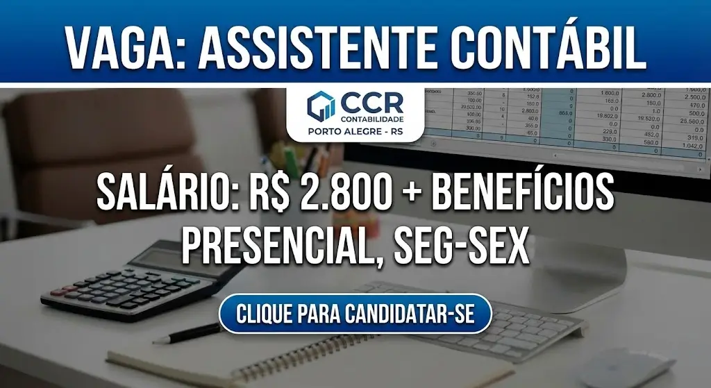 CCR Contabilidade Contrata Assistente Contábil Se você é um profissional da área....
