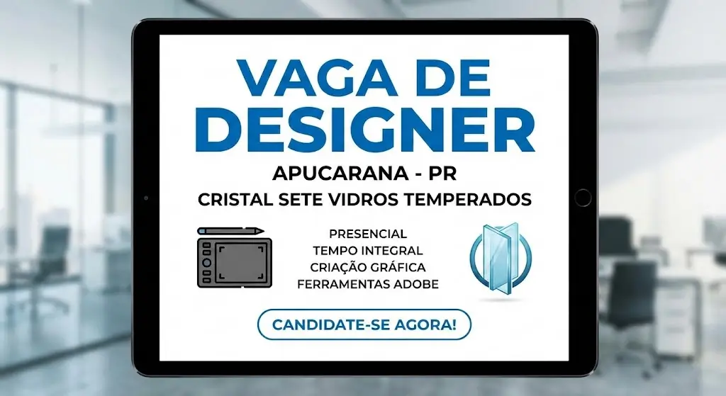 Vaga de Designer em Apucarana: oportunidade presencial na Cristal Sete Vidros Temperados
