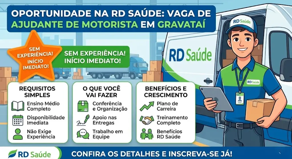Ajudante de Motorista em Gravataí: oportunidade na RD Saúde com contratação imediata