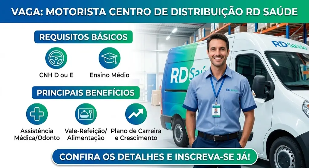 Motorista Centro de Distribuição: requisitos, responsabilidades e benefícios da vaga na RD Saúde