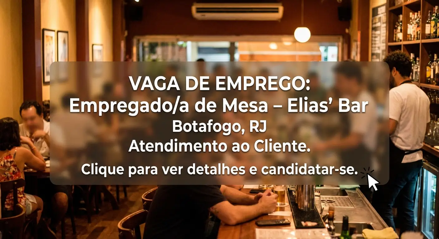 O Elias’ Bar, estabelecimento do setor da restauração, encontra-se a recrutar Empregado/a de Mesa (Atendimento ao Cliente) para integrar a sua equipa em Botafogo, Rio de Janeiro. Esta é uma excelente oportunidade para profissionais que gostam de trabalhar com o público e pretendem desenvolver a sua carreira na área da restauração.