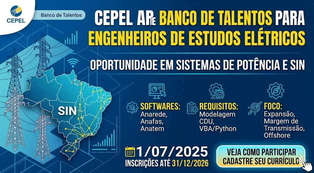 Tem momentos em que uma vaga vai além do salário e dos benefícios. O Centro de Pesquisas de Energia Elétrica, o CEPEL, está montando um banco de talentos para engenheiros elétricos com experiência sólida em estudos do Sistema Interligado Nacional — e a abrangência do trabalho descrito diz muito sobre o nível de profissional que está sendo buscado.