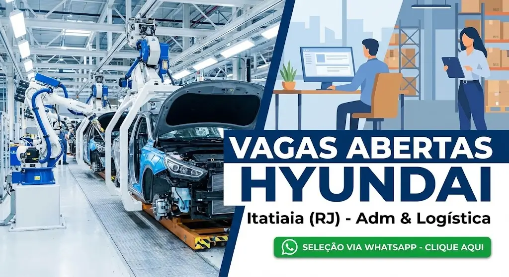 A Hyundai, multinacional sul-coreana reconhecida mundialmente, está com novas oportunidades de emprego em Itatiaia, no Rio de Janeiro. A empresa busca profissionais para os cargos de Assistente Administrativo e Operador Logístico, oferecendo uma experiência única dentro de uma fábrica de grande porte. A seleção é feita diretamente via WhatsApp, tornando o processo de candidatura simples e rápido.