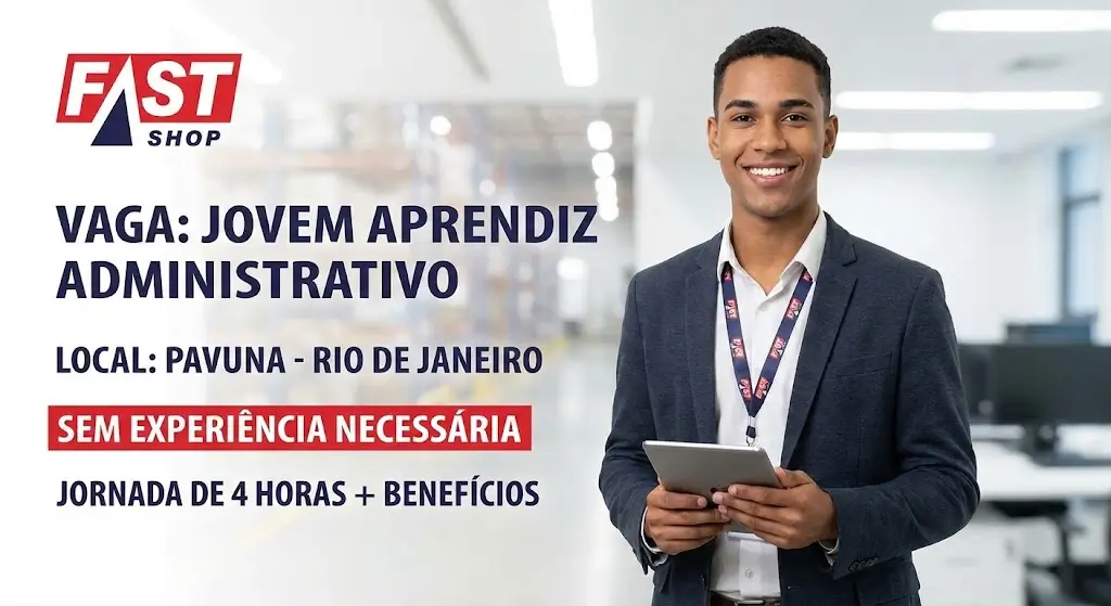 A Fast Shop, empresa de referência no sector do retalho, está a recrutar Jovem Aprendiz Administrativo para o seu Centro de Distribuição (CD) localizado na Pavuna. Esta vaga é direcionada a jovens que pretendem dar os primeiros passos no mercado de trabalho, adquirindo experiência prática e formação profissional num ambiente estruturado e dinâmico.
