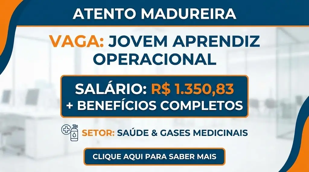 A vaga de Jovem Aprendiz Operacional na Atento Madureira é uma excelente oportunidade para quem deseja iniciar a carreira profissional em uma empresa multinacional de grande porte. A atuação ocorre no setor de atendimento ao cliente voltado para gases industriais e medicinais, uma área essencial que contribui diretamente para a qualidade de vida de milhares de pessoas em todo o país.