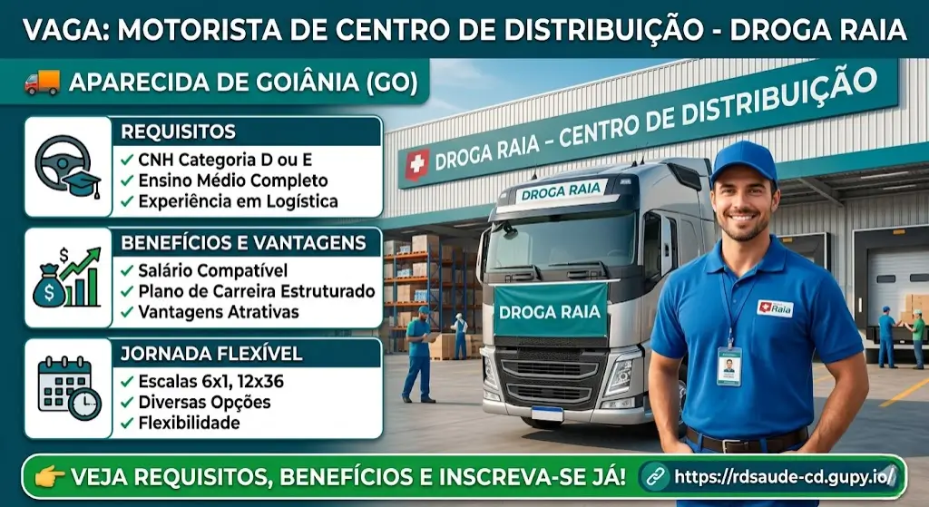 Se você está em busca de uma oportunidade na área de logística, a vaga de Motorista de Centro de Distribuição na Droga Raia pode ser uma excelente escolha. A função é essencial para garantir que os produtos cheguem com segurança e agilidade às unidades, contribuindo diretamente para o funcionamento da empresa.