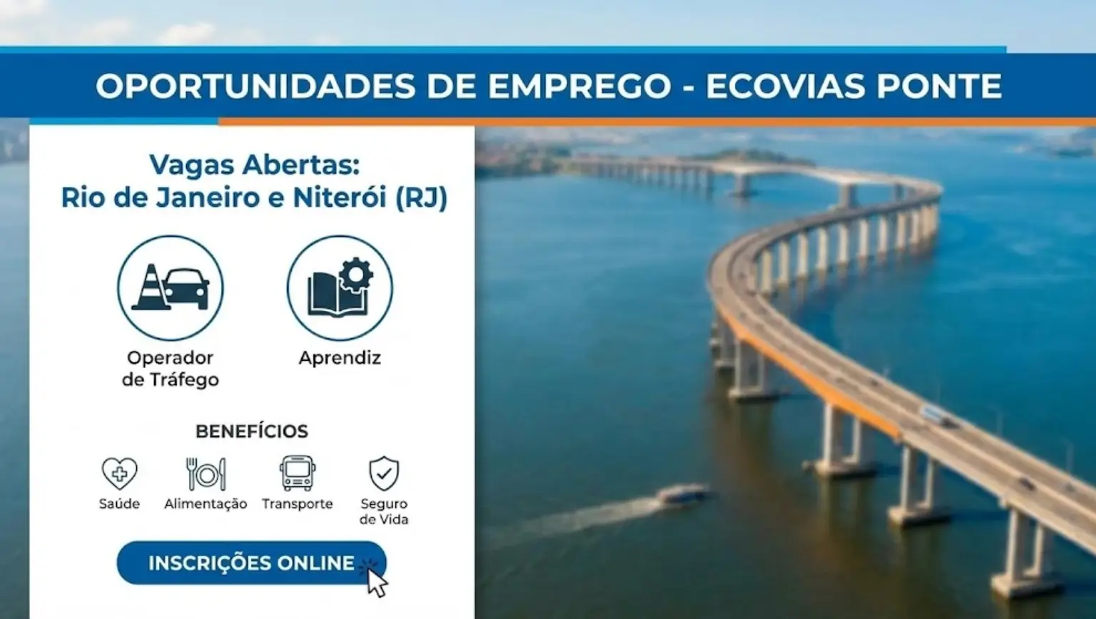 A Ecovias Ponte, a concessionária responsável pela gestão da famosa Ponte Rio-Niterói, tem novas vagas de emprego abertas em Rio de Janeiro e Niterói (RJ). Se está à procura de uma oportunidade de trabalho no setor de transportes e infraestrutura, esta é a sua oportunidade de juntar-se a uma das maiores operadoras de rodovias do Brasil.