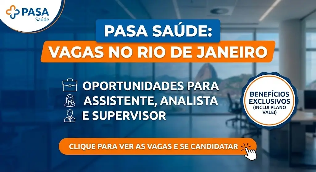 A PASA Saúde encontra-se com vagas de emprego abertas no Rio de Janeiro, disponibilizando oportunidades para Assistente Administrativo, Analista e Supervisor. Esta associação, criada pela Vale, oferece planos de saúde e benefícios diferenciados, com um forte compromisso com os seus associados e colaboradores.