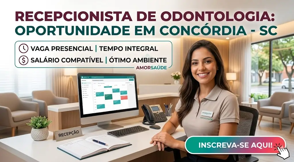 Se você é uma pessoa comunicativa, organizada e gosta de trabalhar diretamente com pacientes, a vaga de recepcionista de odontologia na Amorsaúde Unidade de Concórdia pode ser a oportunidade ideal para você. Localizada em Concórdia, Santa Catarina, a clínica oferece um ambiente profissional e acolhedor, com contratação presencial em tempo integral.
