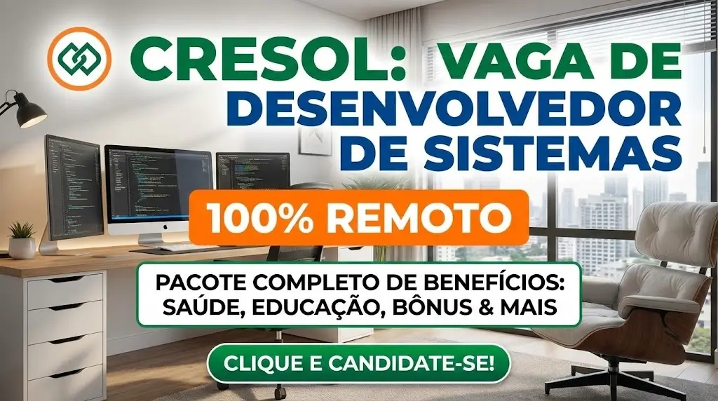 A Cresol, uma das maiores cooperativas de crédito do Brasil, está a contratar um Desenvolvedor de Sistemas para reforçar a sua equipa de TI. Se tens formação na área de tecnologia e procuras uma oportunidade de trabalho remoto, com um pacote de benefícios completo e oportunidades de desenvolvimento contínuo, esta pode ser a oportunidade ideal para ti.